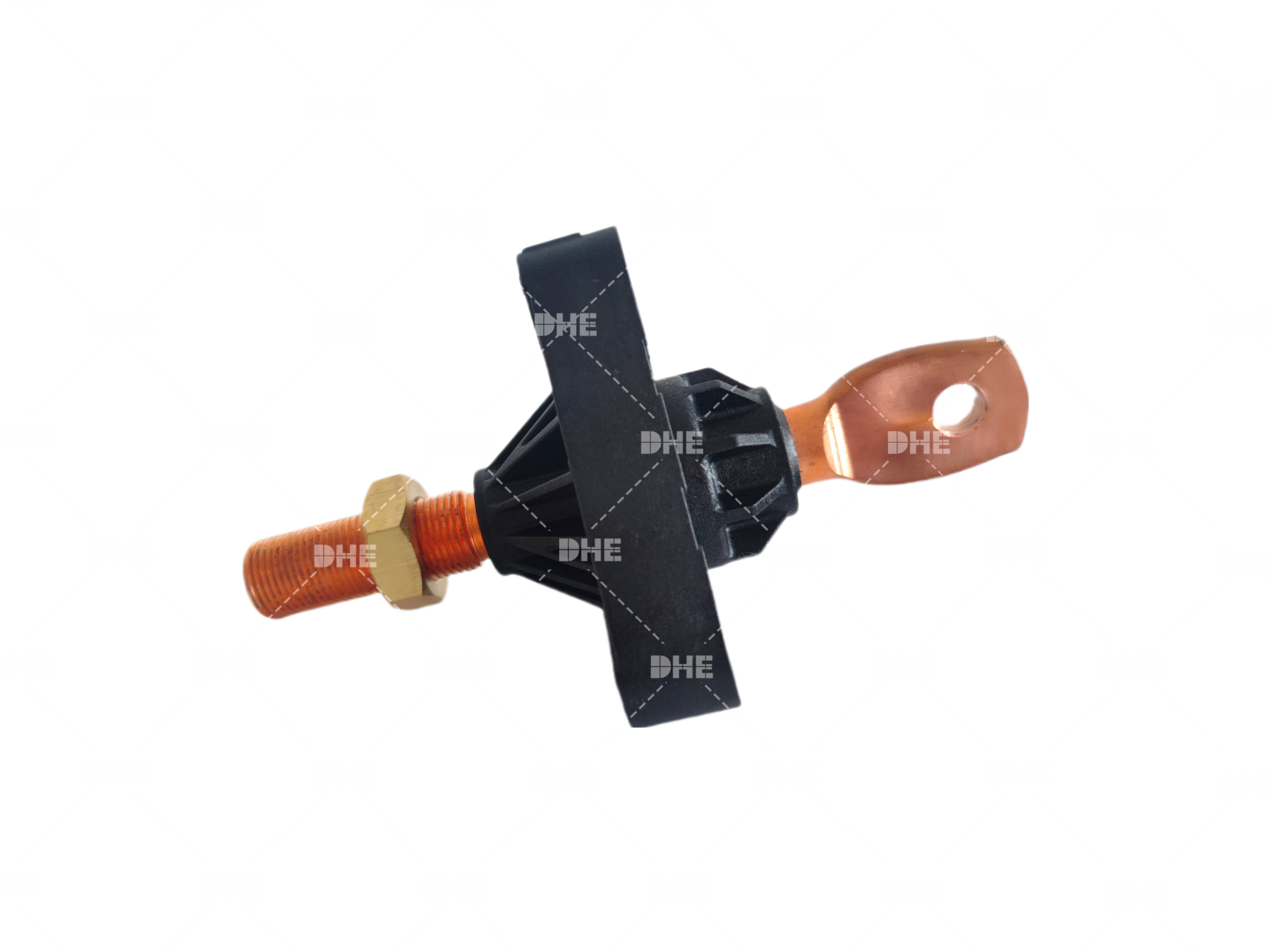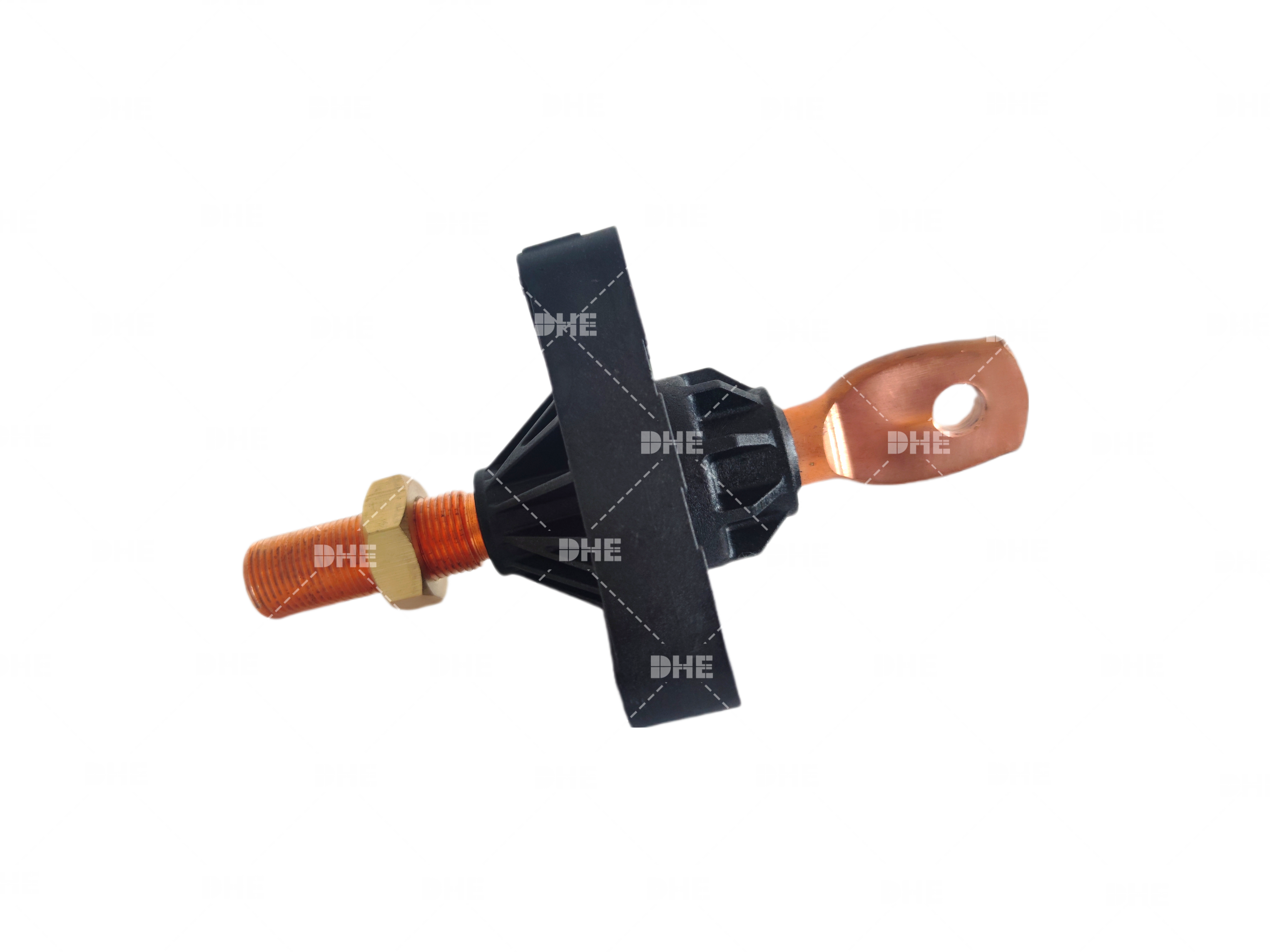 The molded integral bushings are dimensionally interchangeable with the majority of similar bushings available on the market. These interchangeable dimensions include: the bolt circle for the integral mounting flange, the tank wall hole size, the conductor stud diameter, the internal connecting of one hole spade and the external threaded size.