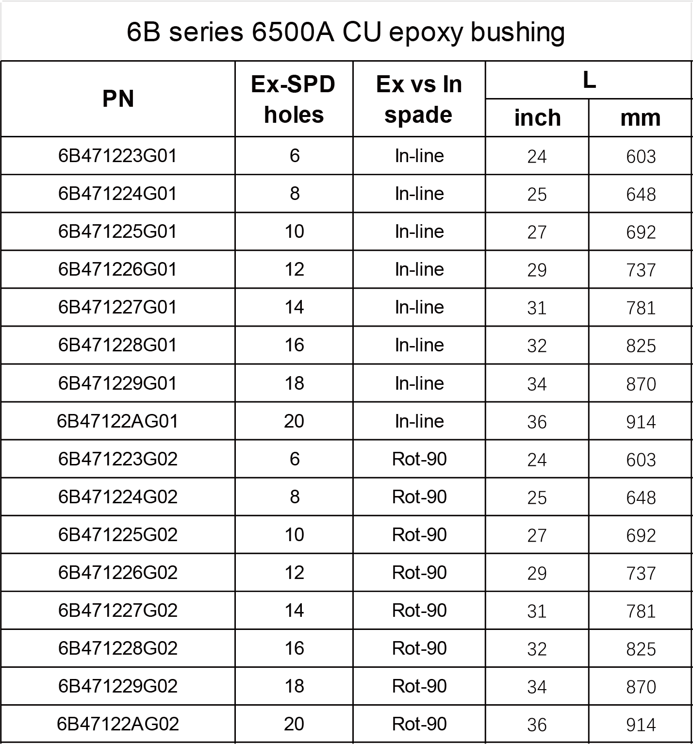 6B series- BIL60kV 6500A CU epoxy bushing