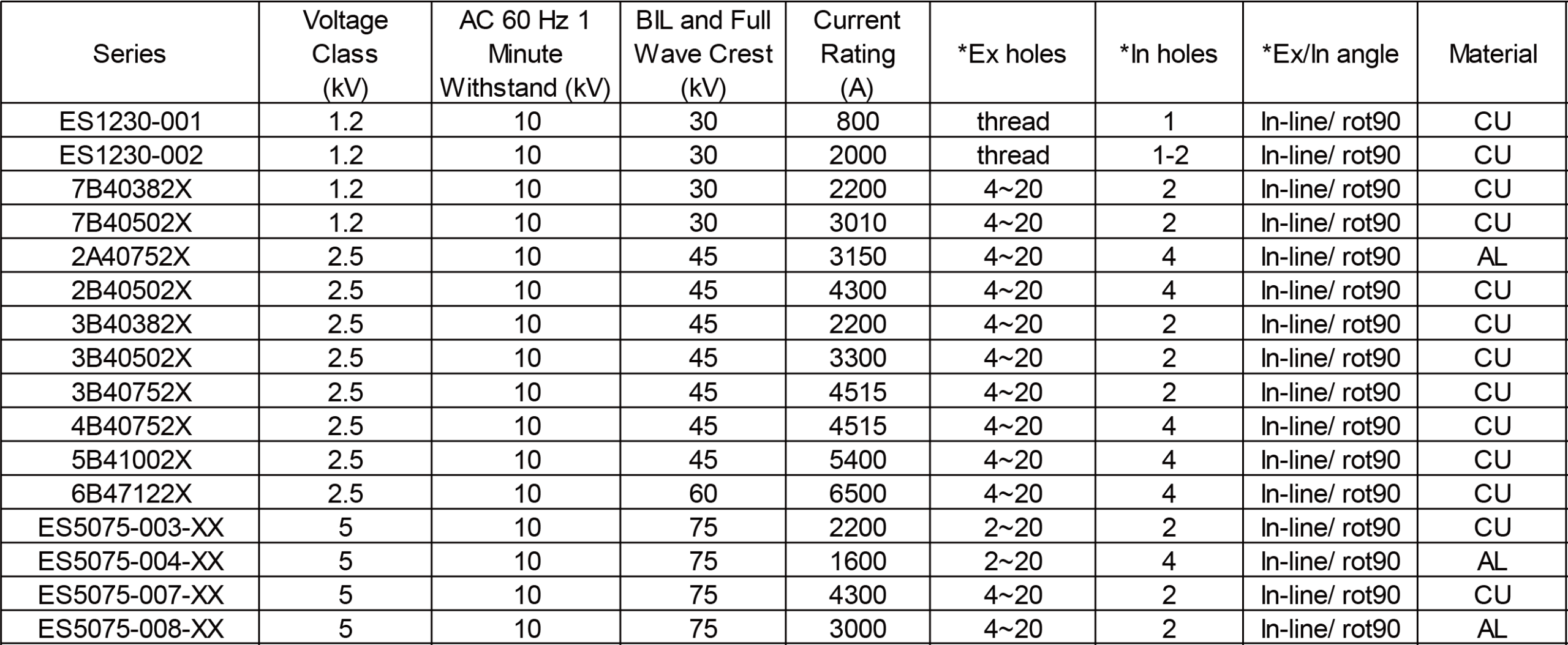 *Ex holes is the holes qty of external spade, which is the spade in air for oil-filled transformer