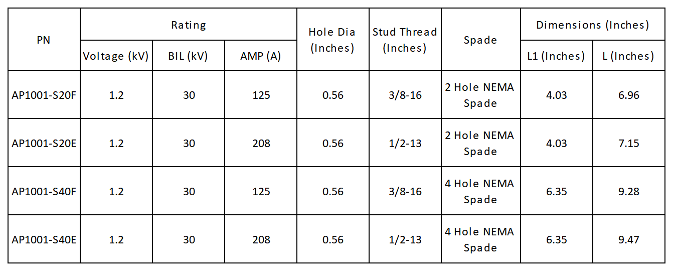 AP1001 series- BIL30kV 100~630A CU/HPP